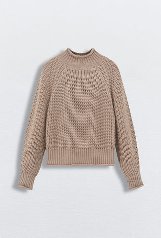 Une pièce essentielle au tricot aéré et structuré. Col montant côtelé, manches raglan et finitions soignées pour un tombé impeccable. La maille épaisse offre chaleur et caractère sans compromis sur la légèreté. Silhouette décontractée, facile à porter seul ou en superposition.