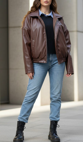 Cette veste bombardier en simili cuir offre une alternative durable et éthique aux matériaux traditionnels. Avec une finition raffinée, elle allie style et fonctionnalité, garantissant une protection contre les intempéries. Idéale pour un usage quotidien, elle apporte une touche contemporaine à toute tenue.